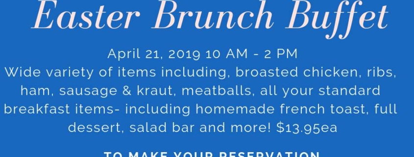 We invite you to enjoy Easter Brunch with us! Buffet is from 10am – 2pm. Call to make your reservations! 920-982-9993